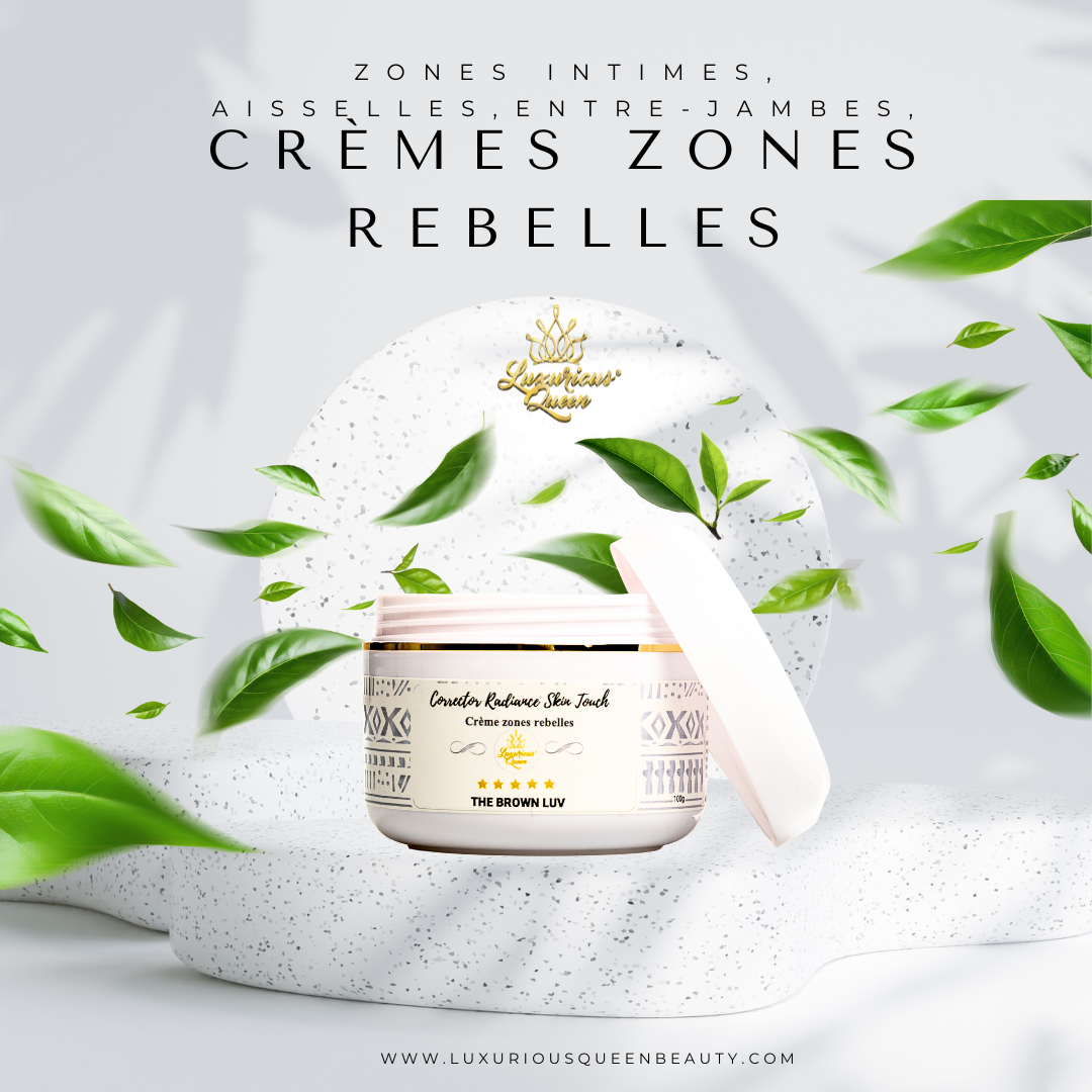 crème zones rebelles, soin aisselles et entre-jambes, crème uniformisante zones délicates, hydratation ciblée zones sombres, alpha arbutin, niacinamide, crème apaisante aisselles.
