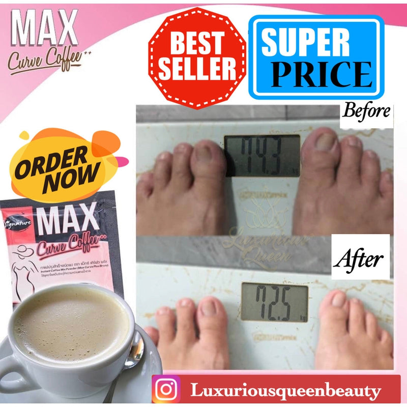 MAX CURVE SLIMMING & WHITENING COFFEE 10 sachets. Its taste is closer to Cappuccino than coffee.
