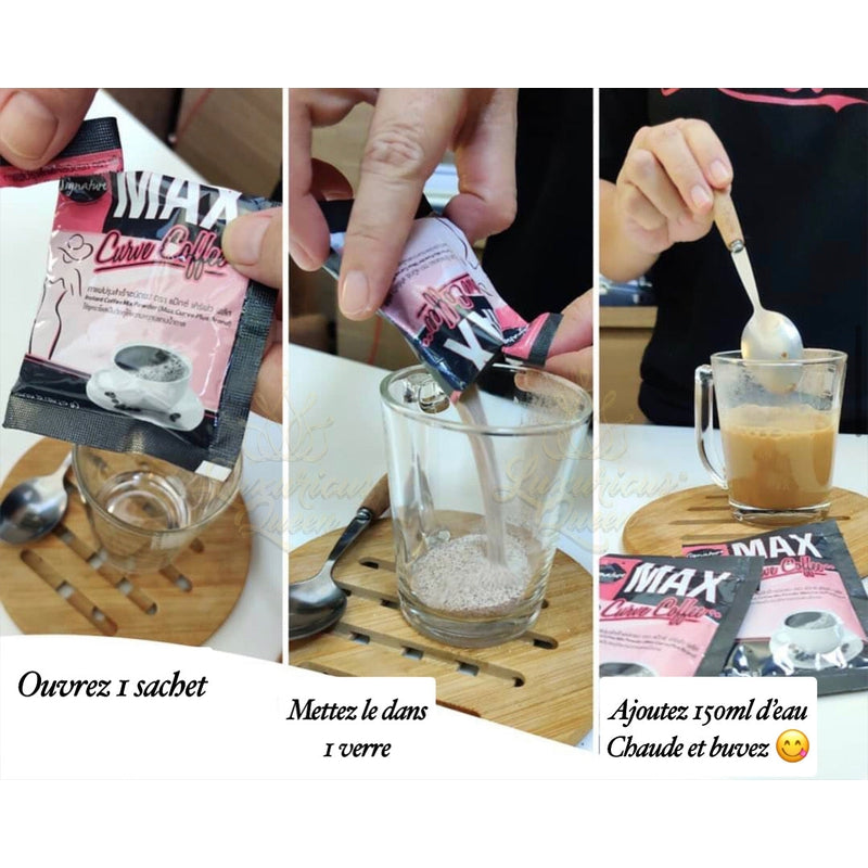 How to drink our Max Curve Slimming Coffee. Put 1 sachet of coffee in 150 ml of hot water. 1 to 2 sachets max per day before 2 p.m.
