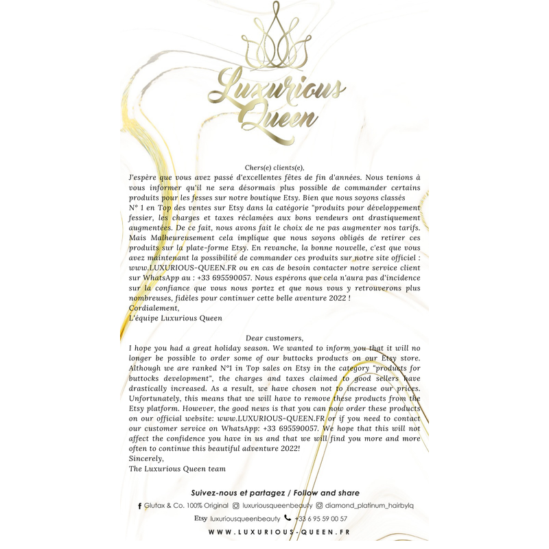En raison de la nature de nos produits et par mesure d'hygiène/santé, les retours ne sont pas acceptés.