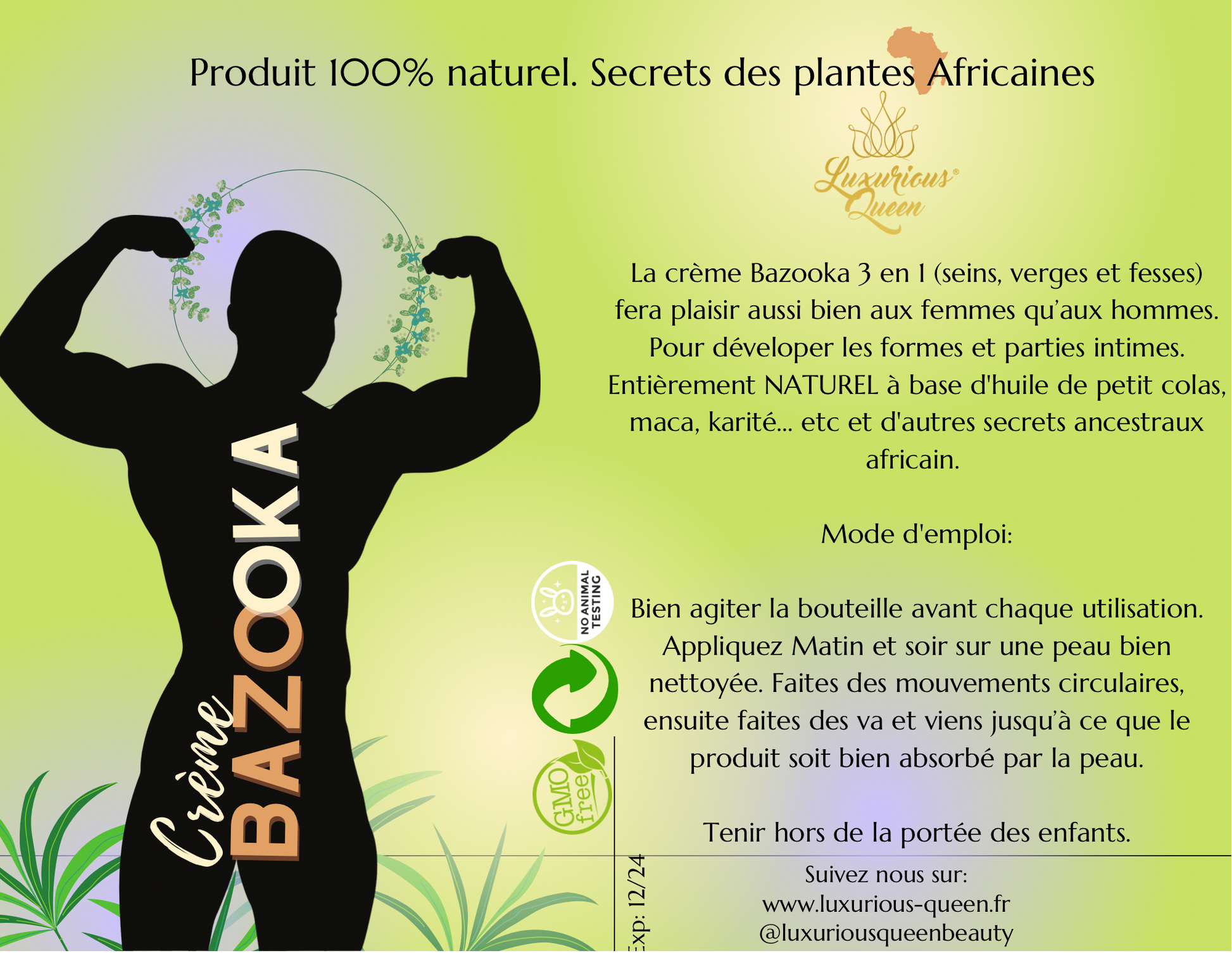 Voici une crème qui satisfera aussi bien les femmes que les hommes. Entièrement NATUREL à base d'huile de petit colas, maca, karité... etc et d'autres secrets ancestraux africain. Il raffermir et augmente la taille du 3e membre de l'homme. Pour un résultat durable et permanent, nous recommandons une utilisation régulière de 2-3 mois minimum.