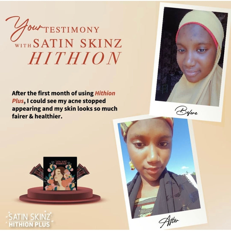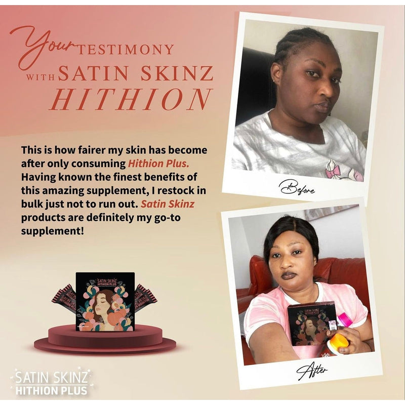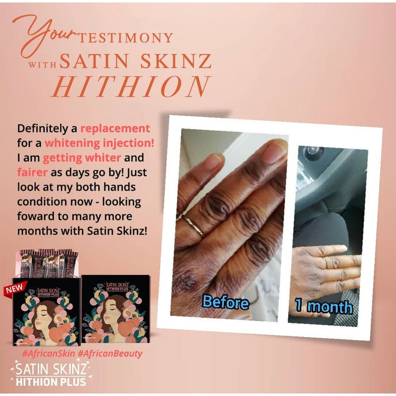 Le satin skinz hithion Plus est le boosteur le plus puissant de la marque Satin Skinz. Il est fait accélérer le processus d'éclaircissement et de l'éclat de la peau. Satin skinz a développé ce produit, suite aux demandes incessantes de leur clientèle noire de plus en plus grandissante. Lié au fait que la mélanine de la peau noire est plus concentré que celle d'une peau blanche. Biensure, les résultats varient cependant en fonction de chaque utilisateur.