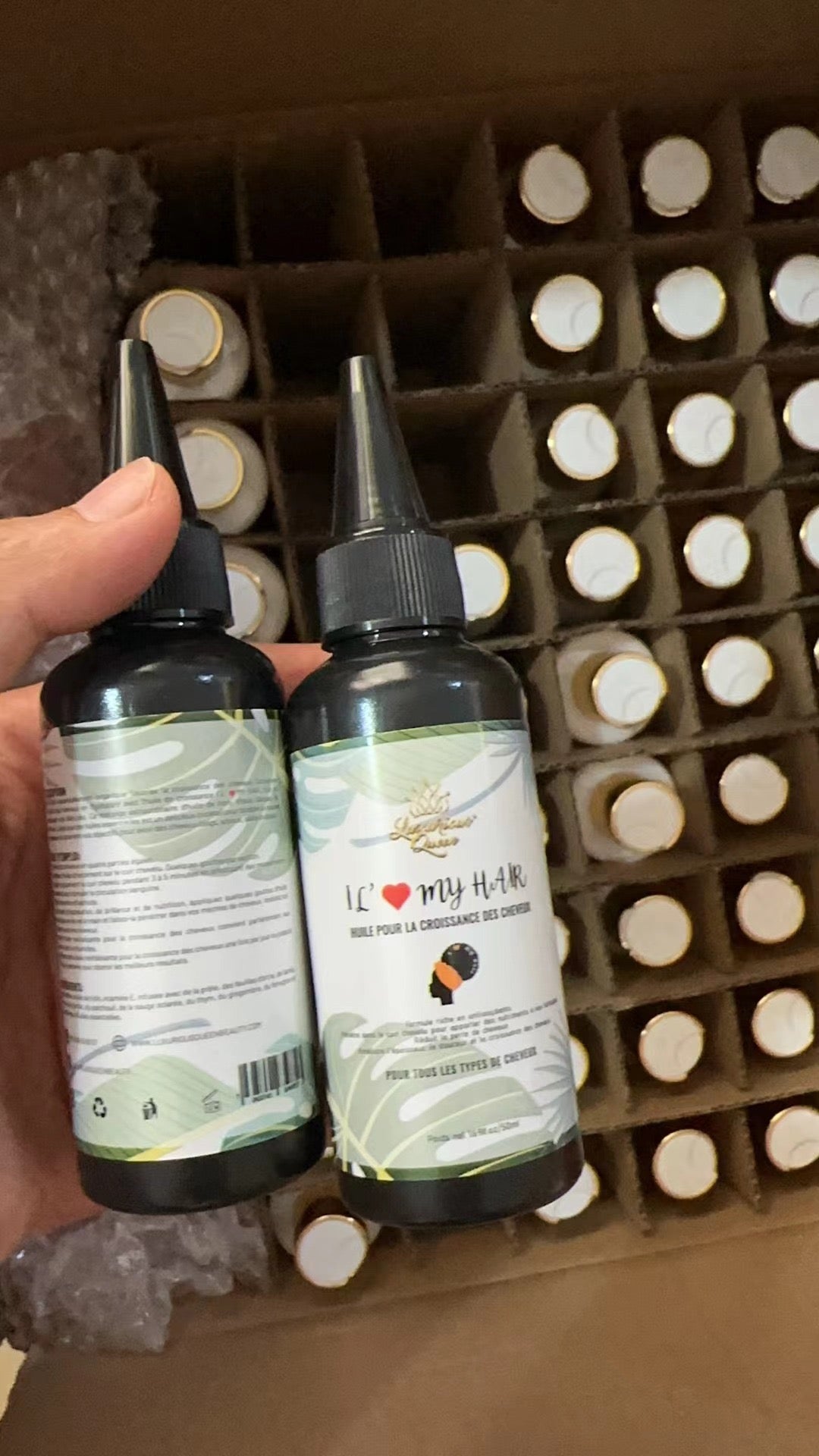 DESCRIPTION: Cette huile essentiellement organique favorise la croissance des cheveux. Conserver l’humidité des cheveux en l’hydratant avec l’huile de croissance I L’♥️ MY HAIR, tout en nourrissant vos follicules. Ce mélange extraordinaire d’huile de ricin, d’huile d’argan, de vitamine E, ainsi que des huiles essentielles est un délicieux cocktail pour booster la pousse de cheveux et atteindre vos objectifs pour avoir des cheveux longs, soyeux, sains et épais.