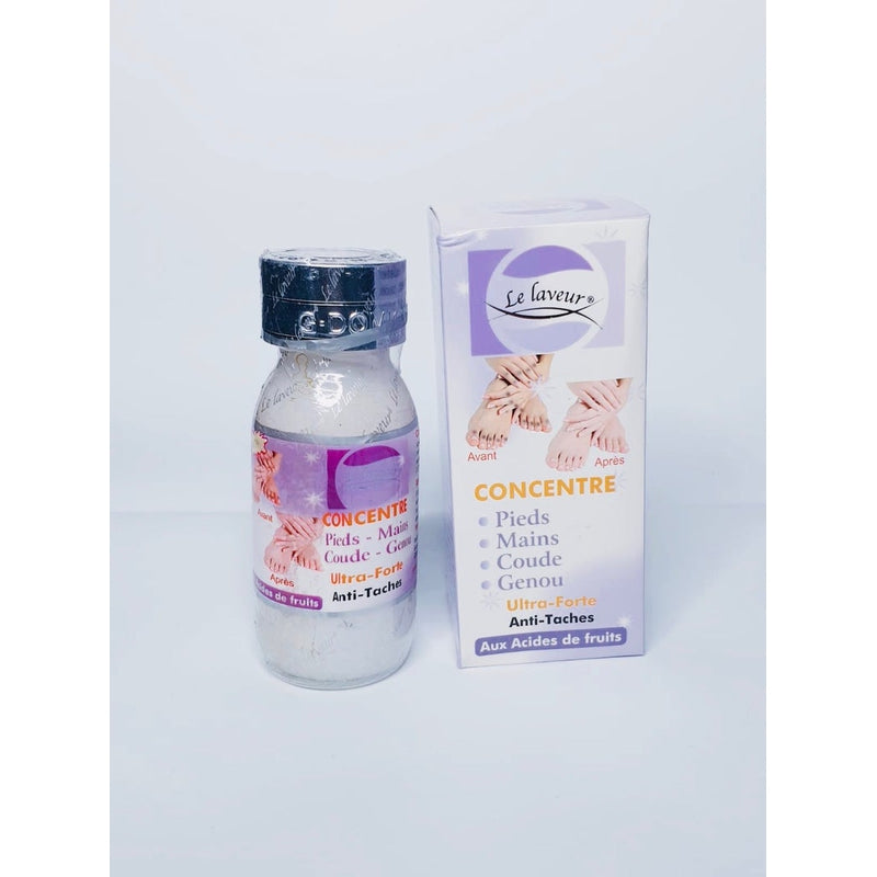 Matériaux: acides de fruits, sérum blanchissant sérum nettoyant pour les zones rebelles telles que: coudes, genoux, mains, pieds. Peut être mélangé à sa crème de corps du soir.