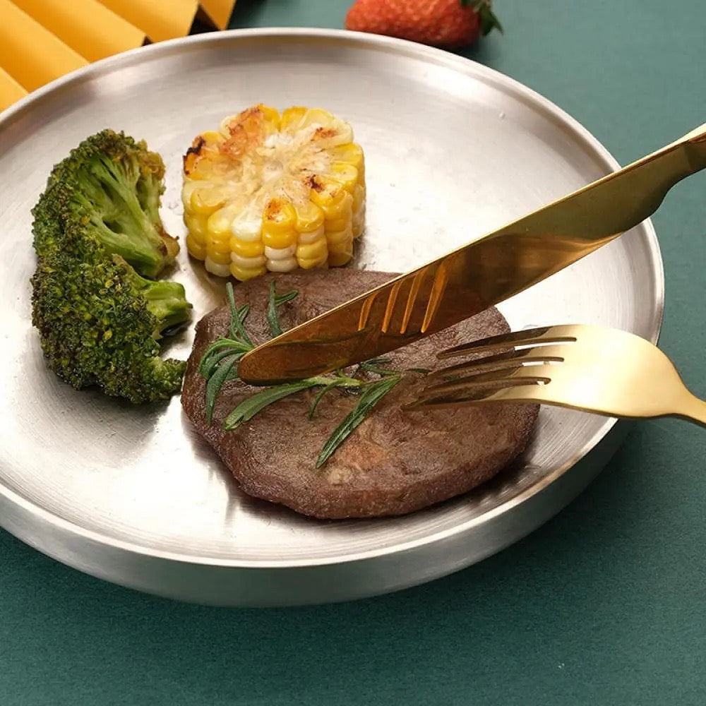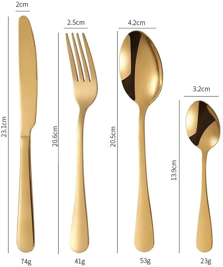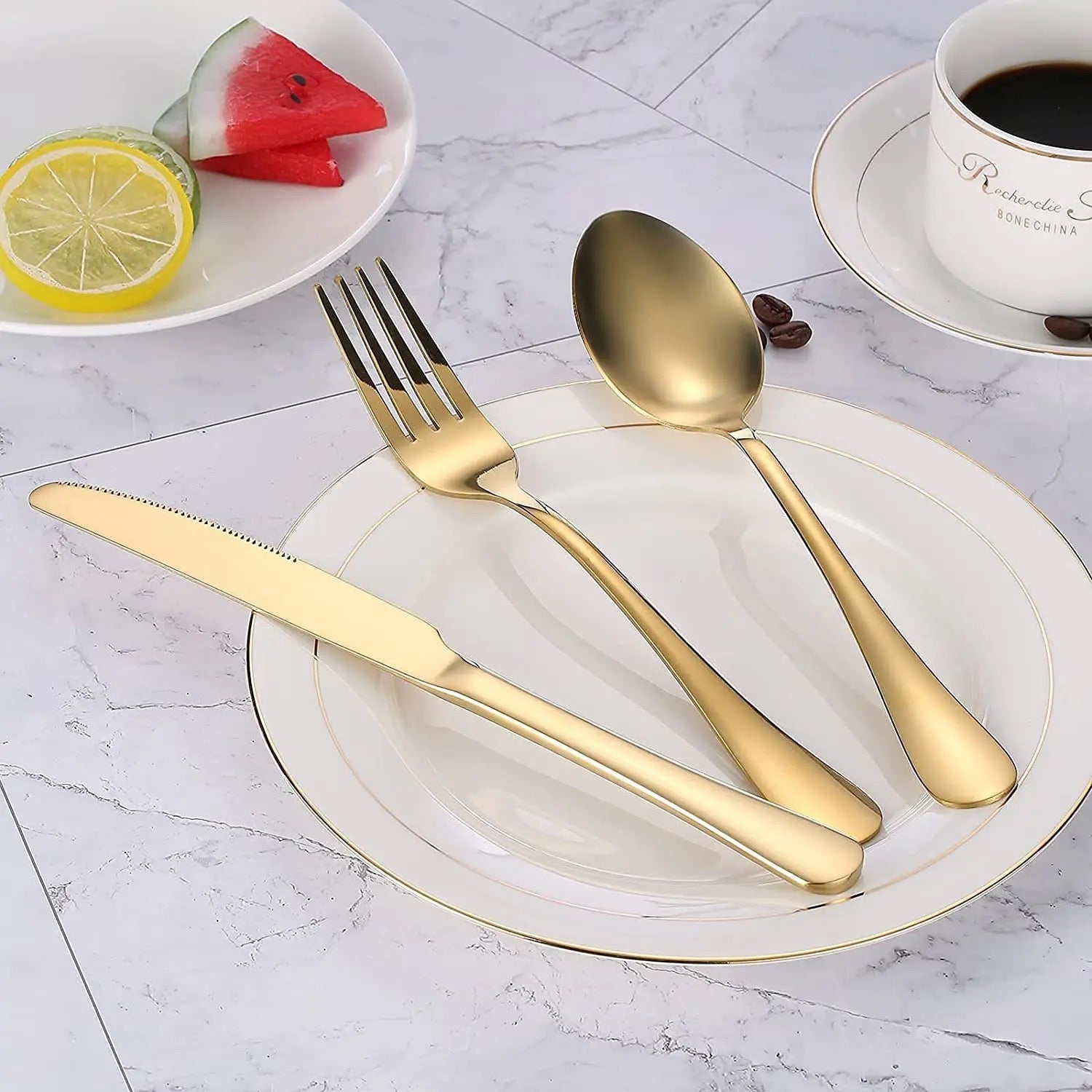 Ensemble de couverts de luxe en acier inoxydable couleur poignée or