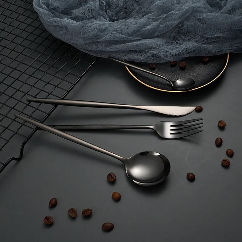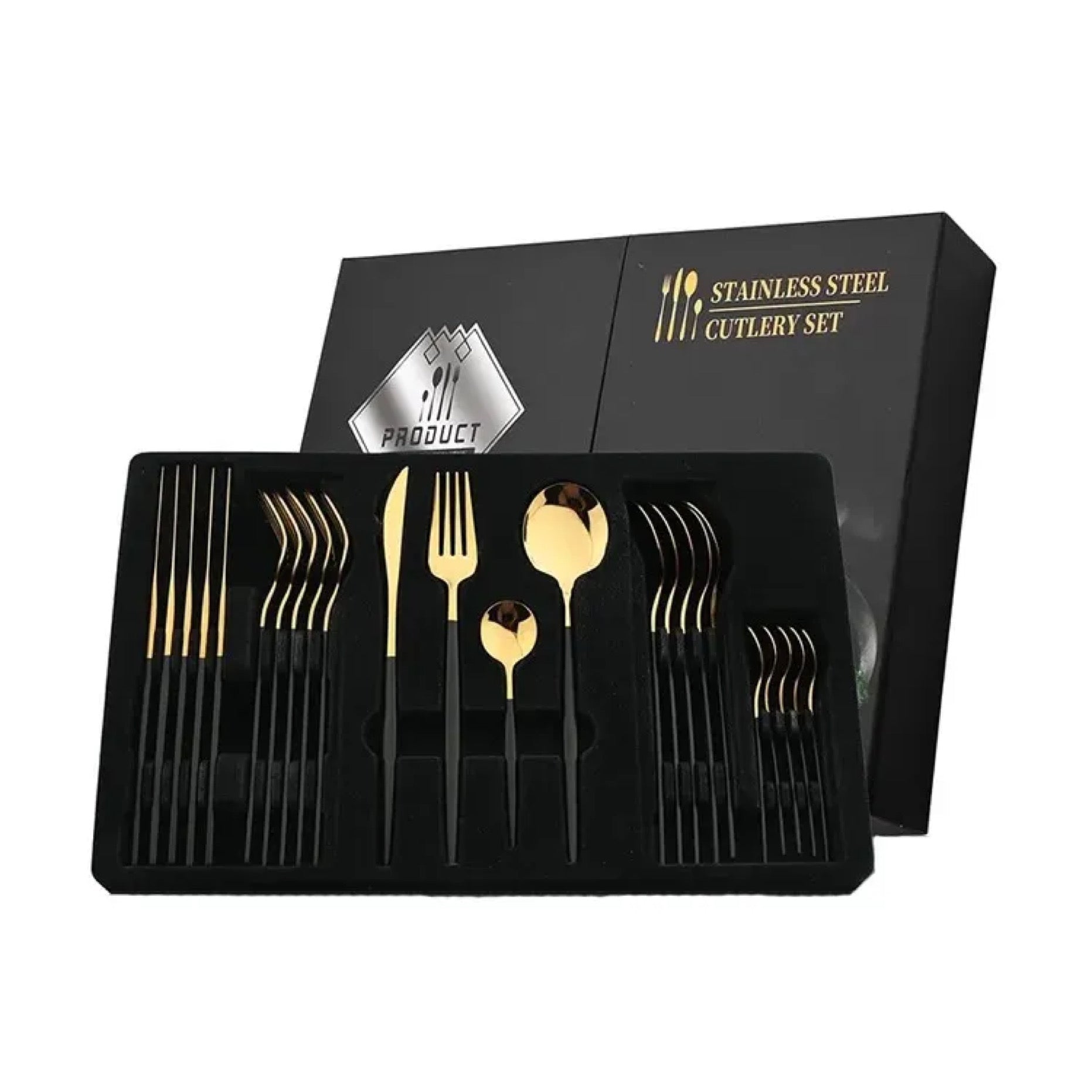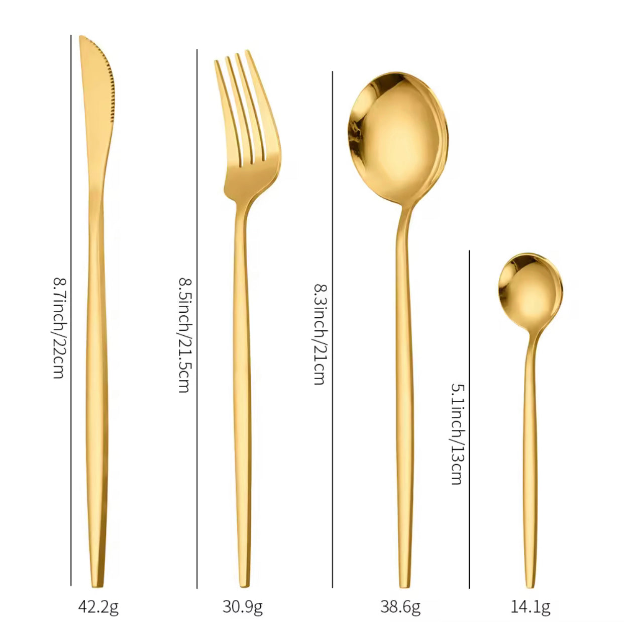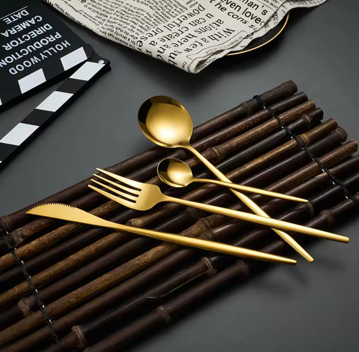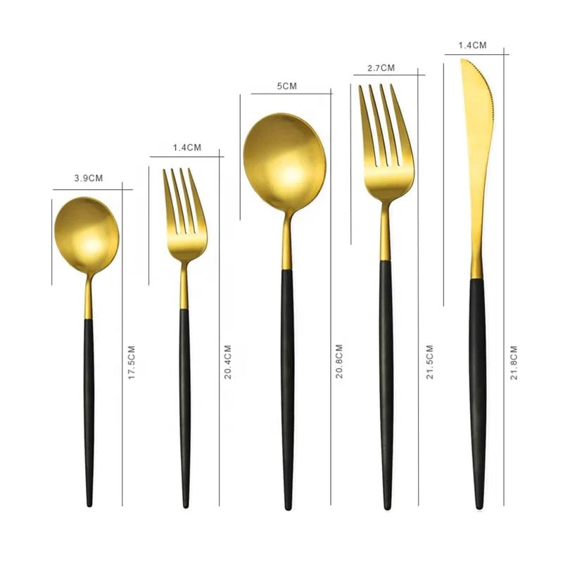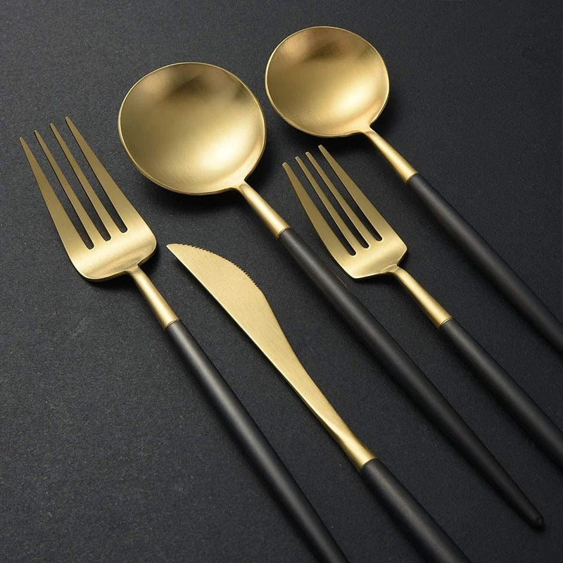 Ensemble de couverts de luxe en acier inoxydable couleur poignée or