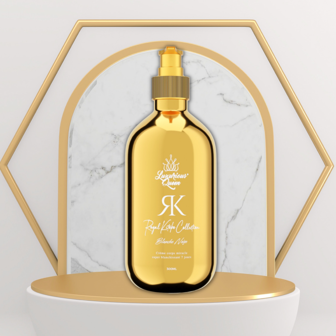 La crème Blanche Neige de la collection ROYAL KITOKO vous donnera le sentiment d'être unique et privilégié grâce à ce flacon dorée noble au lustre chaleureux qui mettra une touche de Luxe inspiré des plus grandes maisons haute couture.